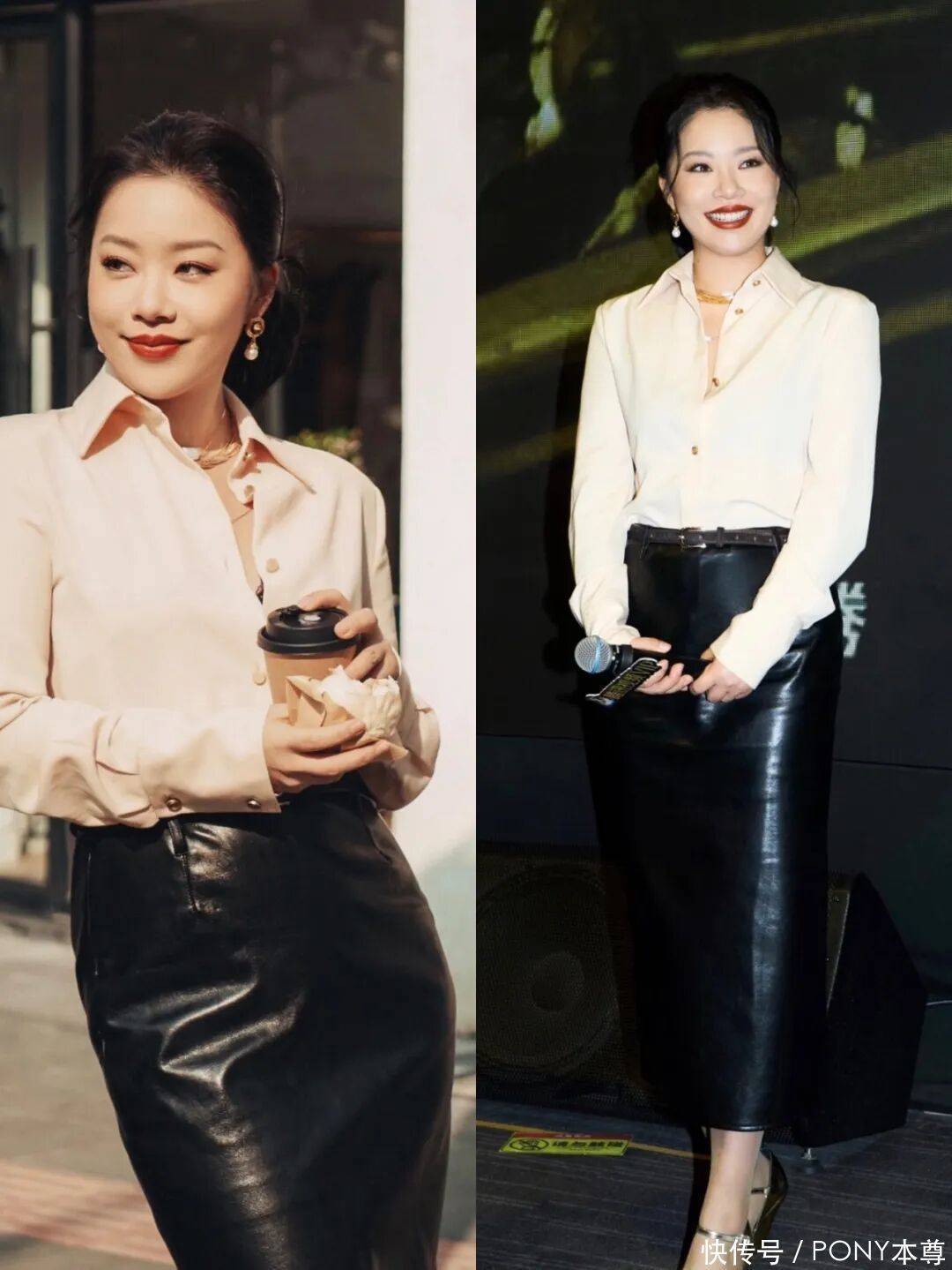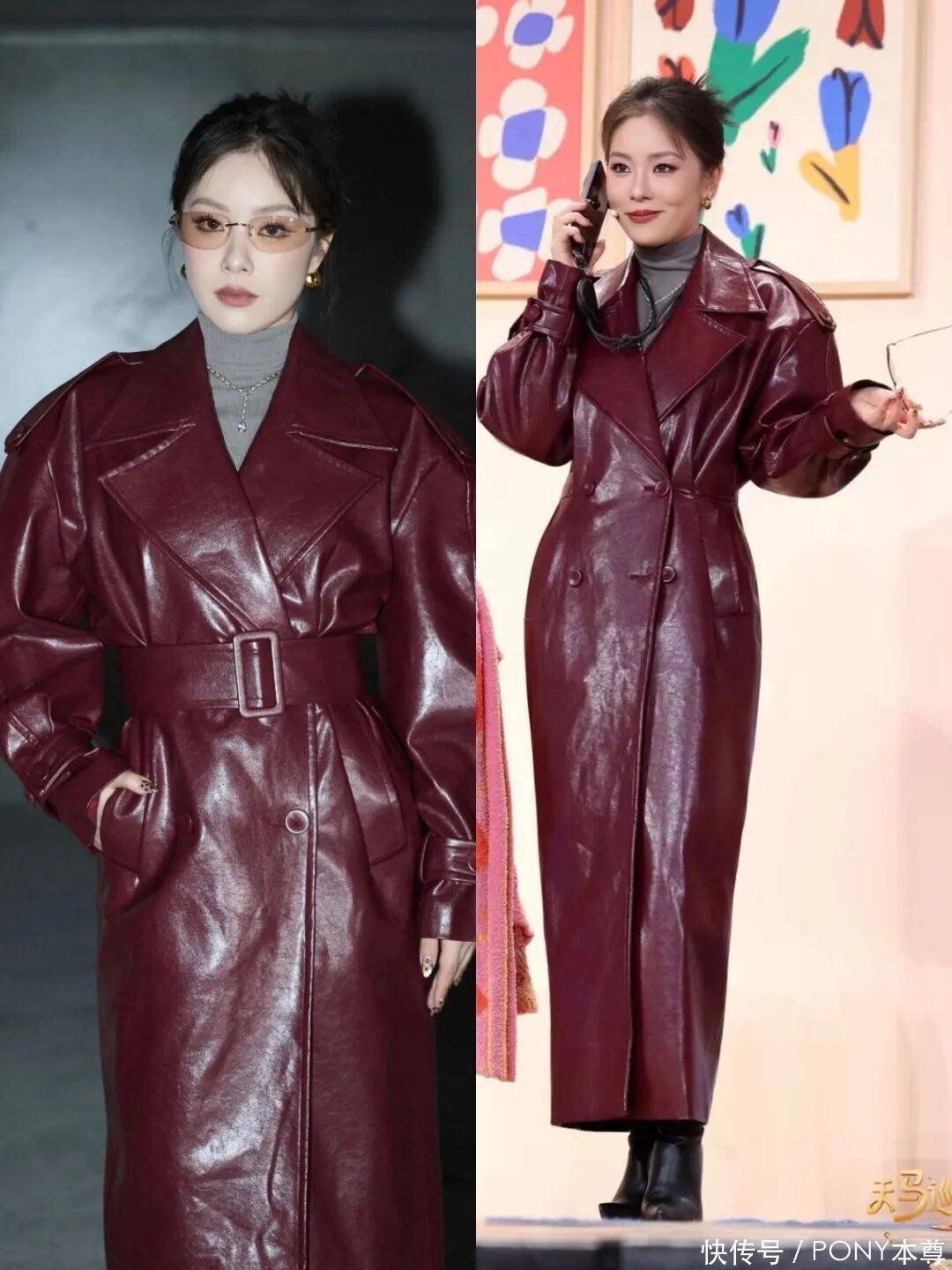 看看下面穿酒红色大衣的状态,皮肤一个是精修过,一个是视频中的杨紫,是不是非常纤细。