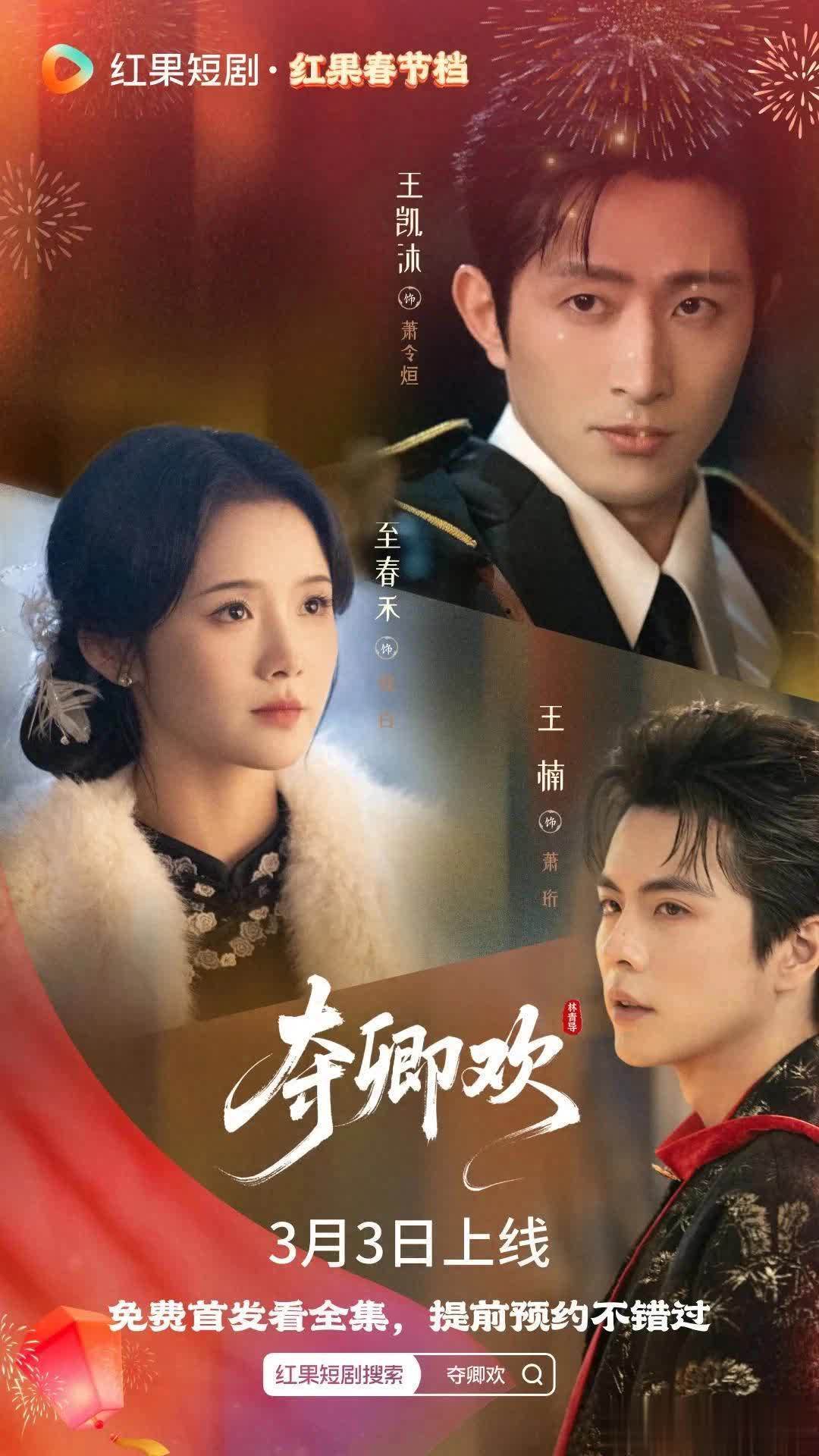 王凯沐、至春禾、王楠主演的民国爱情短剧《夺卿欢》正式官宣定档3月3日红果上线开播!