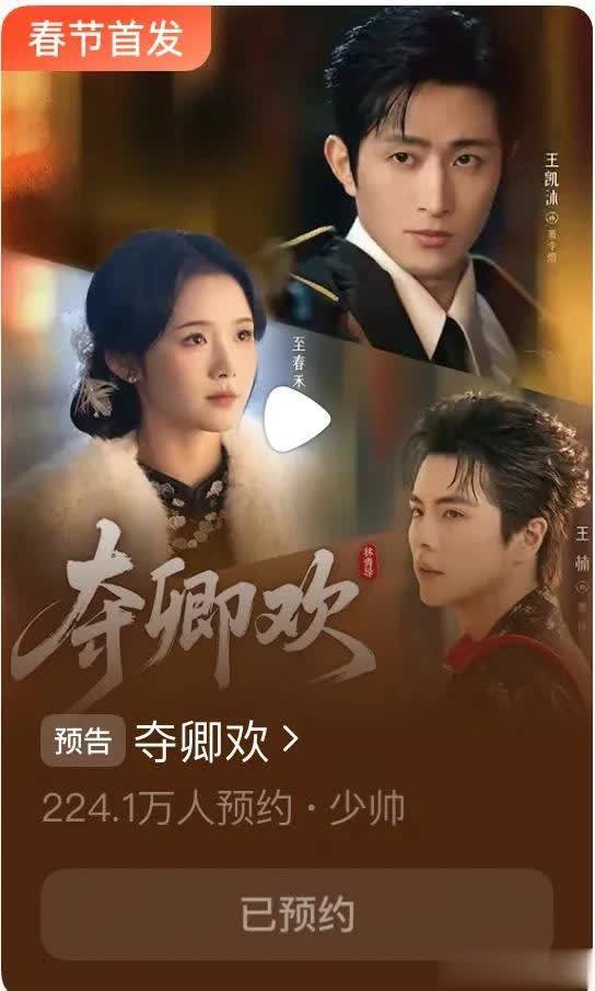 目前《夺卿欢》在红果的预约量已经突破224万,可谓是未播先火!